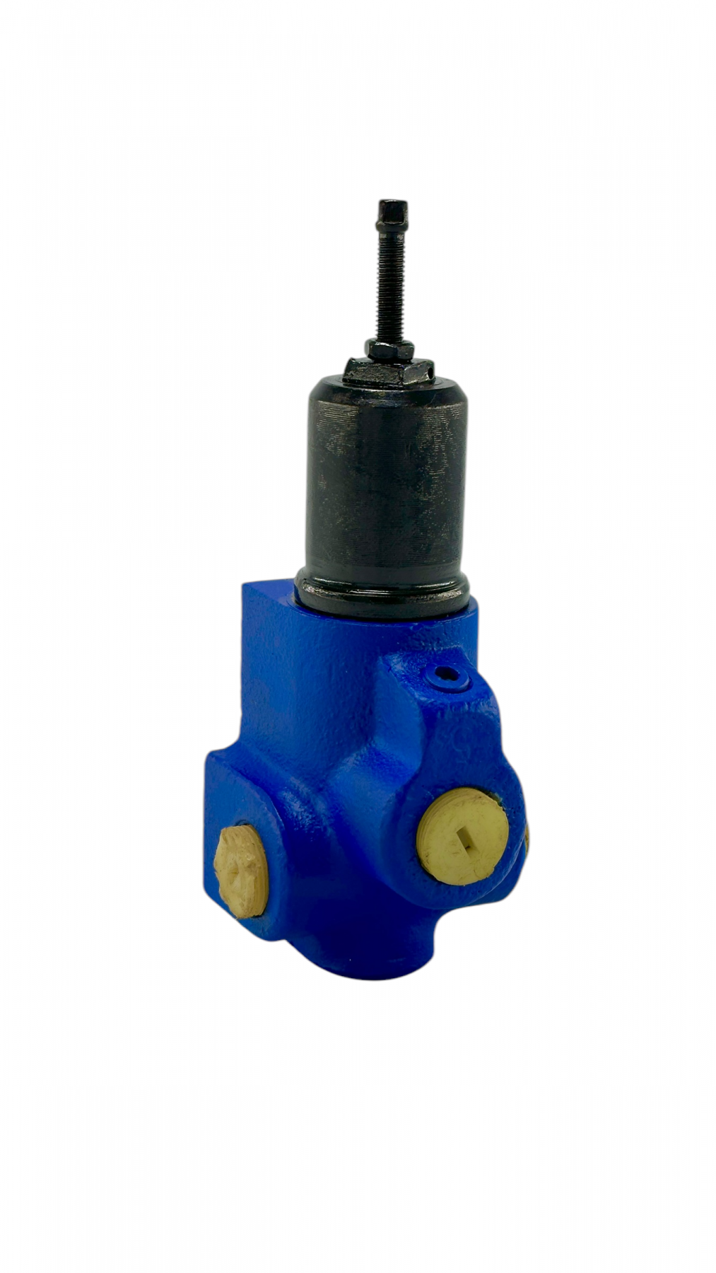 Клапан состоит из корпуса 1, золотника 2, пружины 3, седла 4, корпуса вспомогательного клапана 5, седла 6, пружины 7, клапана 8 и регулировочного винта 9.