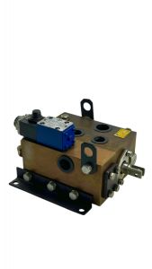 С помощью этого распределителя осуществляется управление исполнительными гидродвигателями, а также автоматическое торможение и остановка механизмов при активации устройств безопасности.