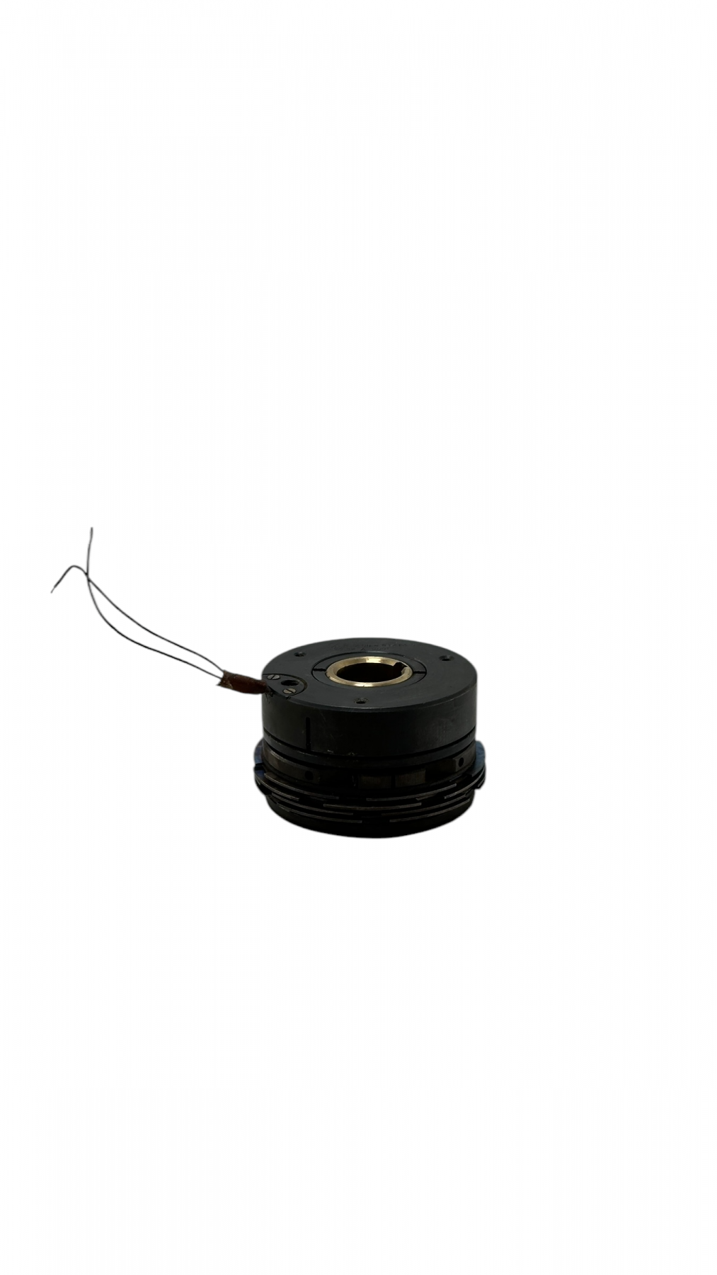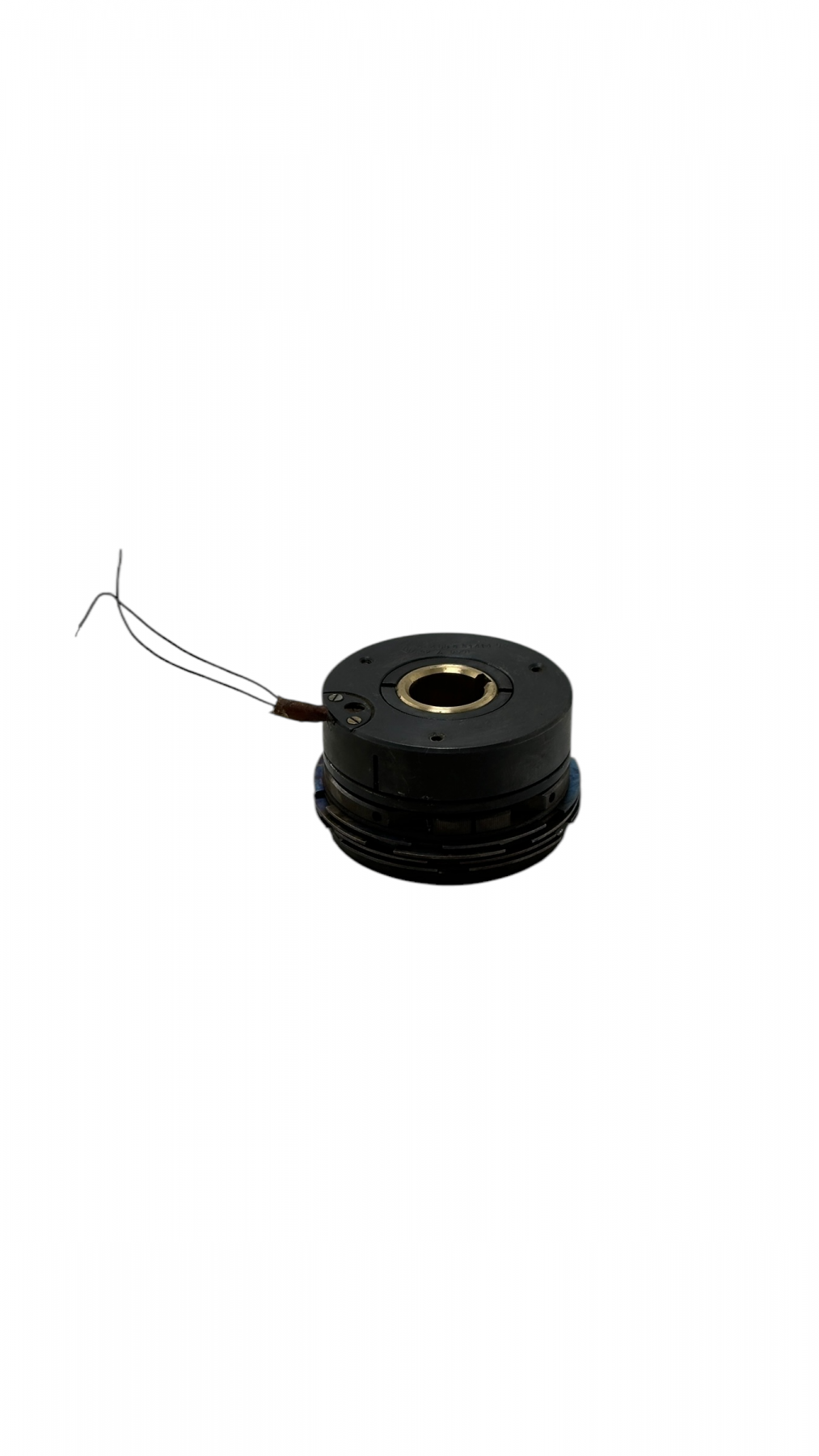 При подаче напряжения на катушку якорь притягивается к корпусу и сжимает пакет фрикционных дисков, вследствие чего момент передается с ведущего вала на ведомый.