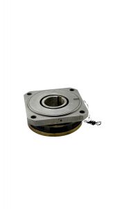 При подаче напряжения на катушку якорь притягивается к корпусу и сжимает пакет фрикционных дисков, вследствие чего момент передается с ведущего вала на ведомый.