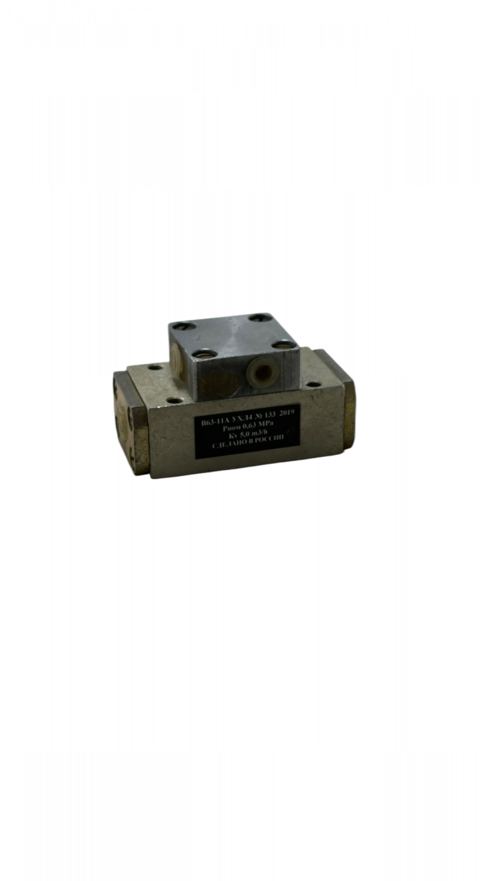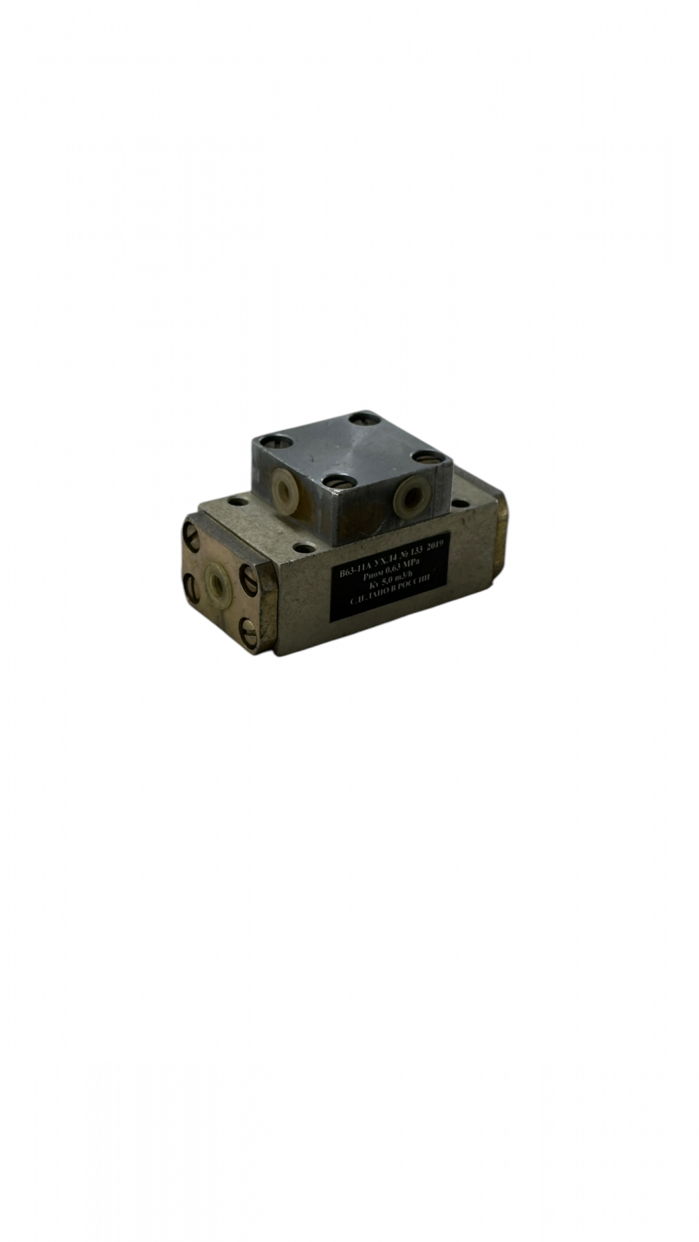 Пневмораспределитель В63-11 устанавливают на обратной плоскости и закрепляют четырьмя винтами M5.