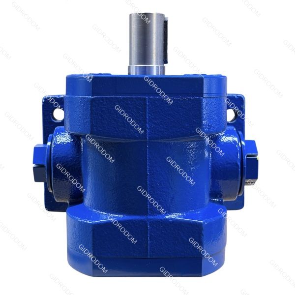 В корпусе насоса размещены два закаленных стальных зубчатых колеса и скользящие подшипники в виде монолитных втулок. Зубчатые колеса соединены с ведущим и ведомым валами с помощью шпонок. Рабочий комплект (включая зубчатые колеса, втулки и валы) фиксируется крышками, одна из которых содержит манжетное уплотнение. Аксиально колеса фиксируются пружинными кольцами, позволяющими самонастройку относительно торцевых поверхностей втулок. В валах имеются отверстия, а на поверхности крышки — канавки для отвода утечек масла во всасывающую линию.