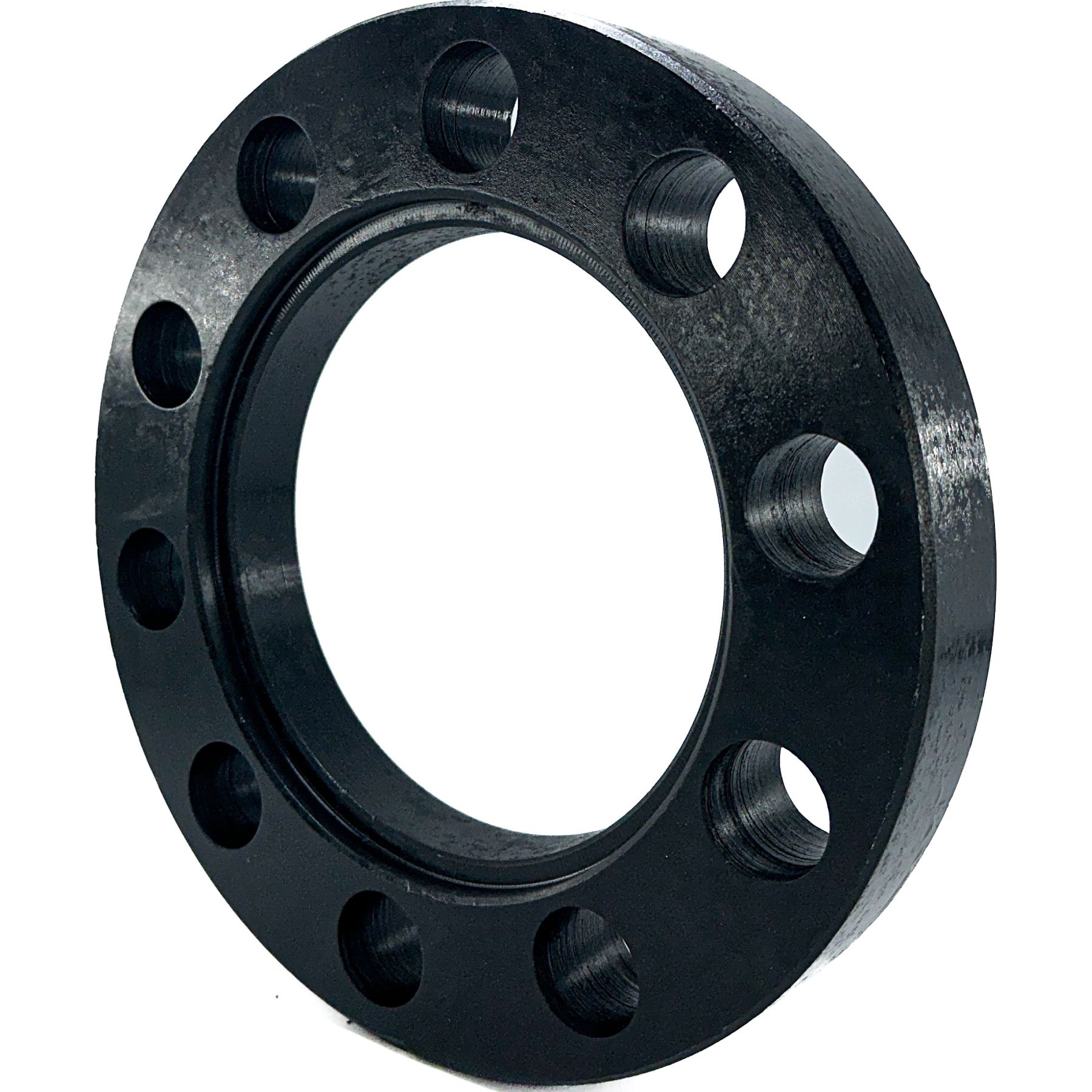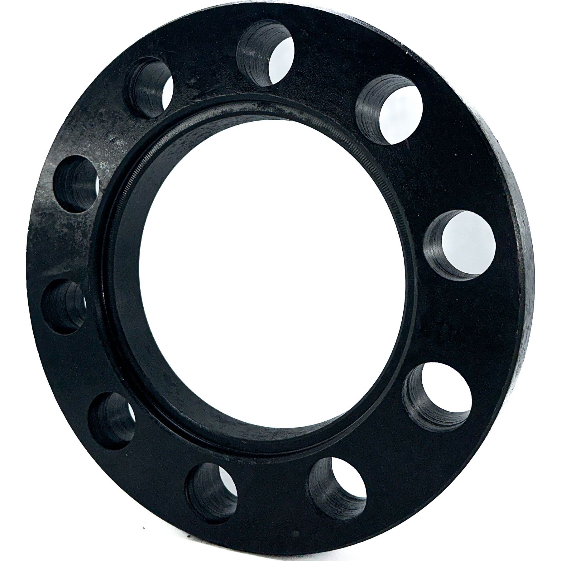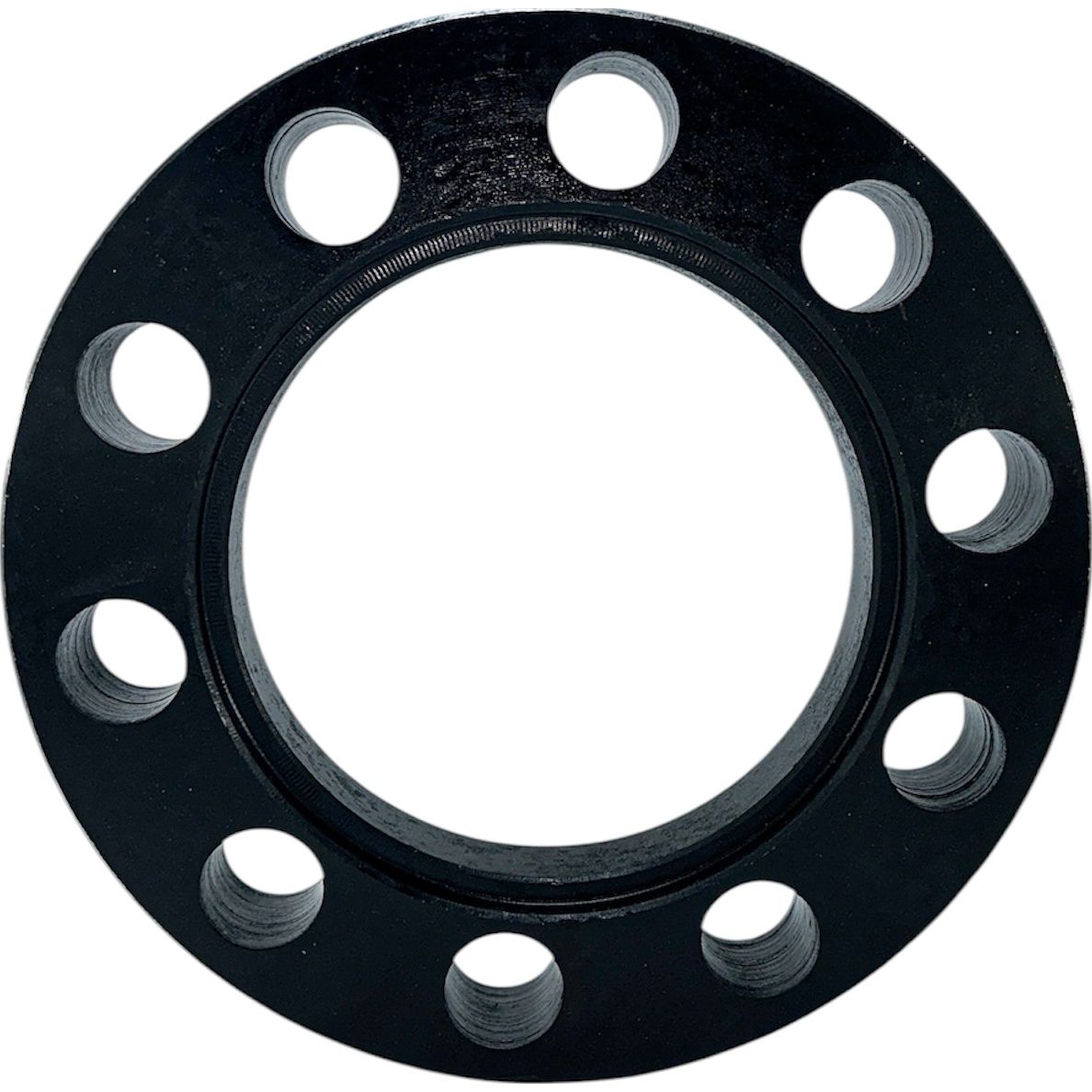 Фланец представляет собой стандартный металлический элемент размером 100 мм, который обрабатывается на токарном станке для обеспечения плотного прилегания к бурту полиэтиленовой втулки. Использование обычного фланца 100 мм не позволяет ему полностью надеться на втулку до бурта из-за технологического расширения у основания, которое служит ребром жесткости и позволяет втулке работать под заданным давлением.