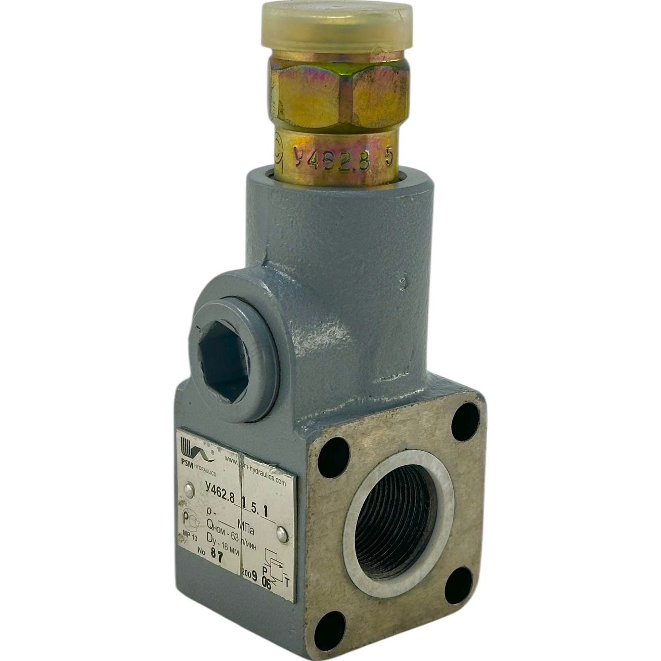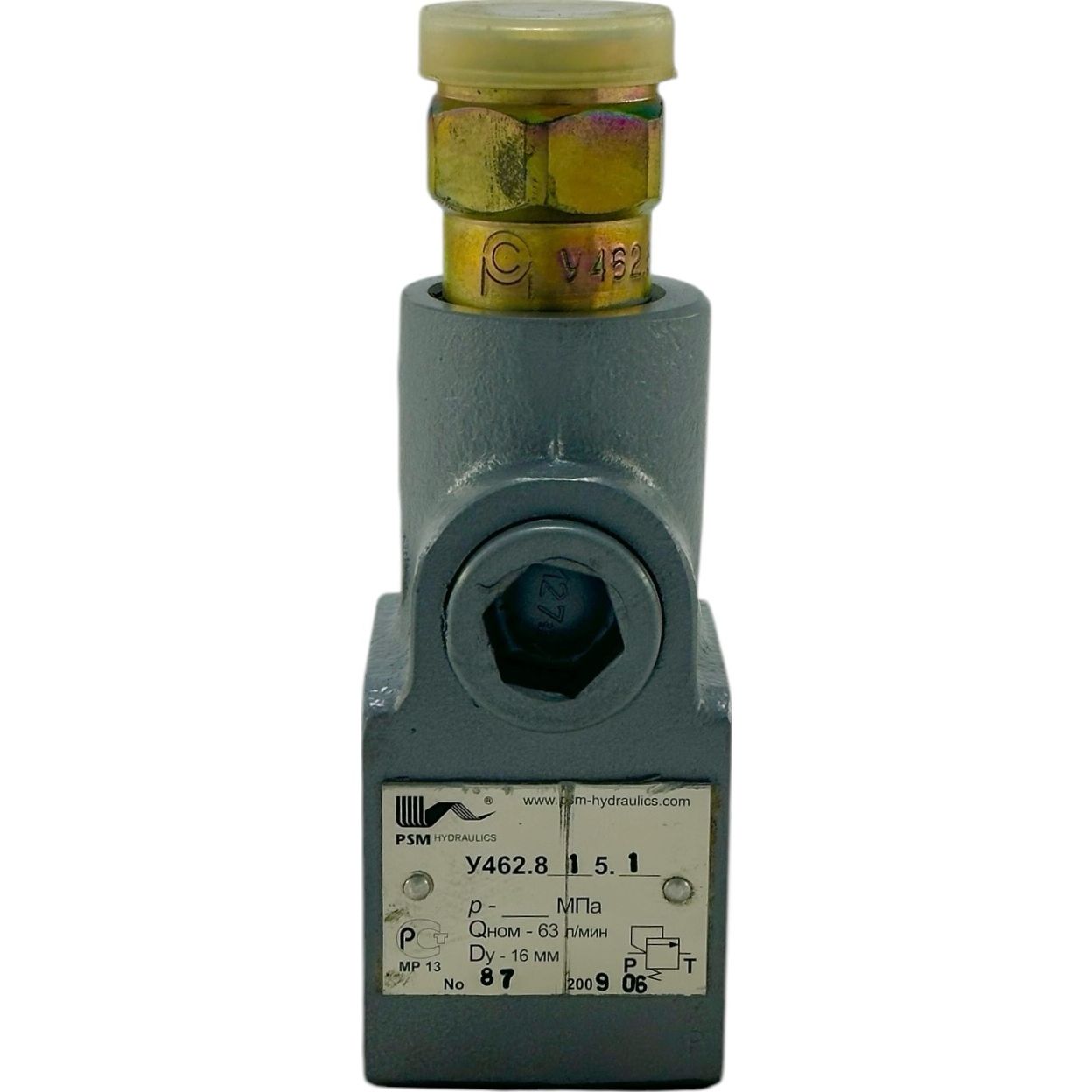 Механизм с обозначением У 462.817.1 имеет диапазон настройки давления от 13 до 28 МПа и выполняется в патронном исполнении. При размещении заказа необходимо указать конкретное значение давления для настройки. Если это значение не указано, клапан будет установлен на минимальное давление 13 МПа в установленном диапазоне, а информация о настройке на клапане не будет указана. Важно, чтобы покупатель помнил, что гидроклапан настраивается при номинальном расходе рабочей жидкости, а его открытие происходит при давлении, равном или превышающем 0,75 от значения настроечного давления.