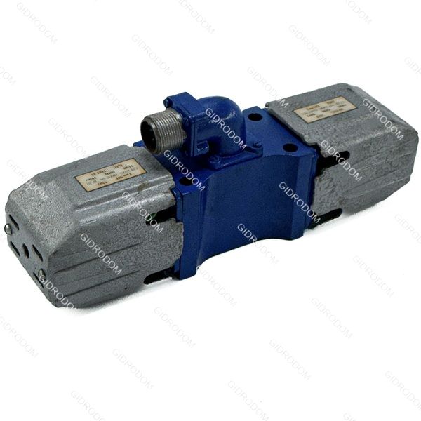 В распределителях 44ПГ73-12 и 45ПГ73-12 управление золотником осуществляется через два электромагнита и пружины, которые центрируют золотник при отключении питания. Для станочного оборудования используются электромагниты на 220В / 110В переменного тока, а для мобильной техники — на 12В / 24В постоянного тока. Газировка напряжения также указывается в конце маркировки: 44ПГ73-12 В220 (допускается 44ПГ73-12.220).