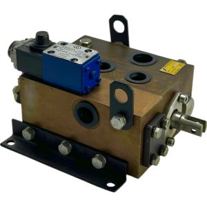 С помощью этого распределителя осуществляется управление исполнительными гидродвигателями, а также автоматическое торможение и остановка механизмов при активации устройств безопасности.