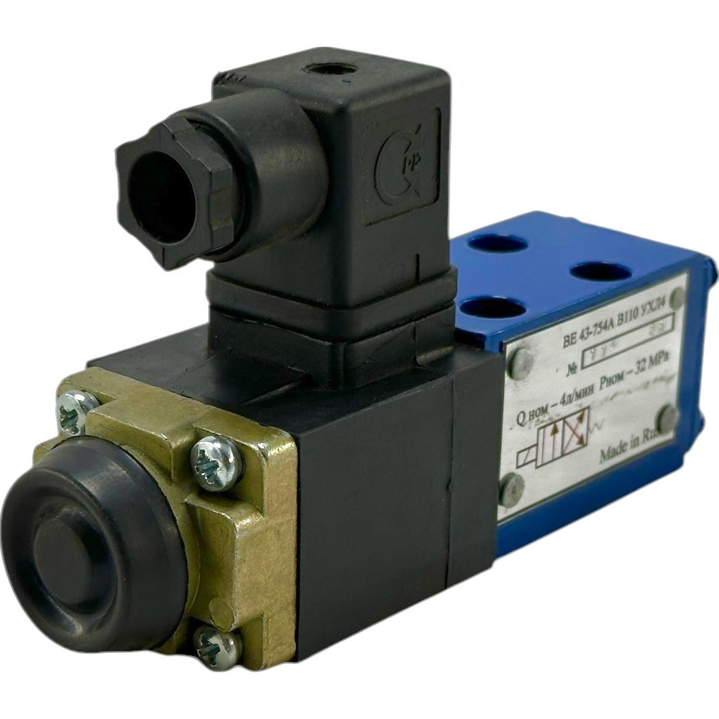 Гидрораспределители моделей ВЕ43.574А.Г24 (В110, В220),ВЕ43.754А.Г24 (В110, В220),ВЕ43.573.Г24 (В110, В220),ВЕ43.24.Г24 (В110, В220),ВЕ43.34.Г24 (В110, В220) и ВЕ43.54.Г24 (В110, В220) являются электромагнитными золотниковыми гидрораспределителями с диаметром канала 4 мм. Эти устройства предназначены для контроля пуска, остановки и направления объемного потока жидкости. Основные элементы гидрораспределителя ВЕ43 включают корпус, один или два электромагнита, золотник и возвратную пружину.