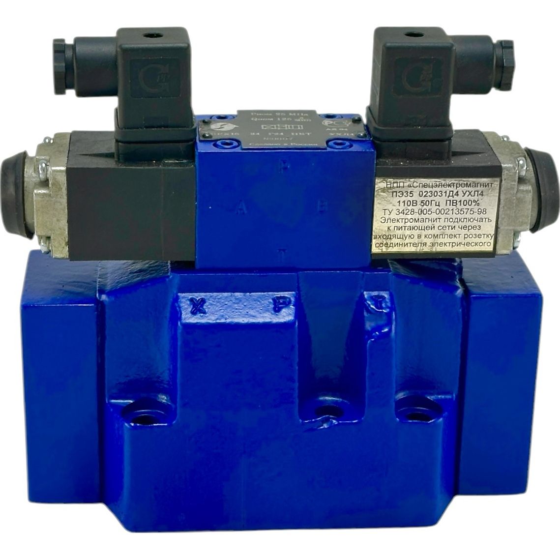 Корпус гидрораспределителя служит его основной деталью, в которой находятся главные каналы. Одно отверстие предназначено для ввода рабочей жидкости под давлением, два других — для присоединения к другим устройствам, дренажное отверстие выводит жидкость в бак, а также имеются вход и выход для управления потоком.