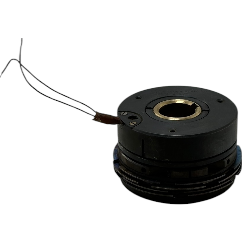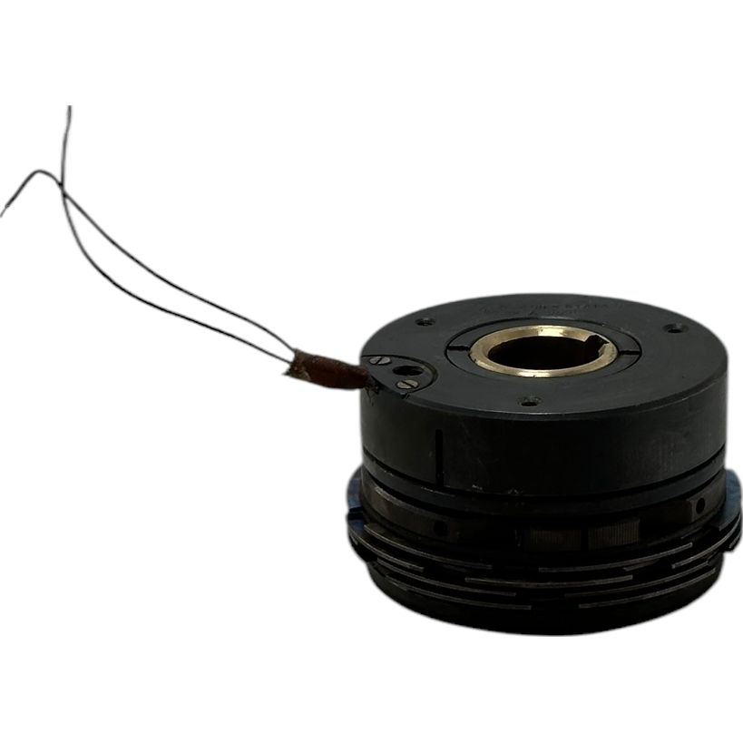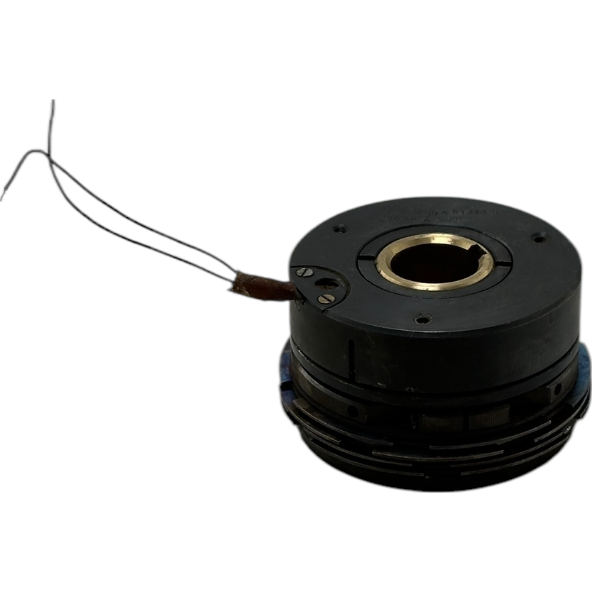 При подаче напряжения на катушку якорь притягивается к корпусу и сжимает пакет фрикционных дисков, вследствие чего момент передается с ведущего вала на ведомый.