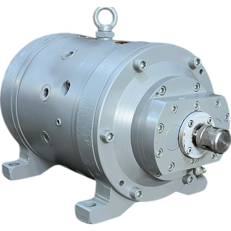Принцип работы насоса НАР 74М 224/320 заключается в следующем: ротор, который также выполняет функцию блока цилиндров, установлен на составном шлицевом валу. При вращении ротора сферические головки поршней плотно прижимаются к наклонному опорному диску. Это приводит к обратнопоступательным движениям поршней, что, в свою очередь, обеспечивает всасывание и выброс рабочей жидкости из цилиндров.