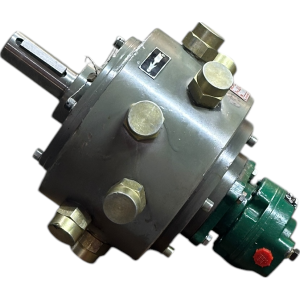 Пластинчатый насос крепится к радиально-поршневому устройству и получает приведение от его вала через муфту, а герметизация стыка осуществляется уплотнением.