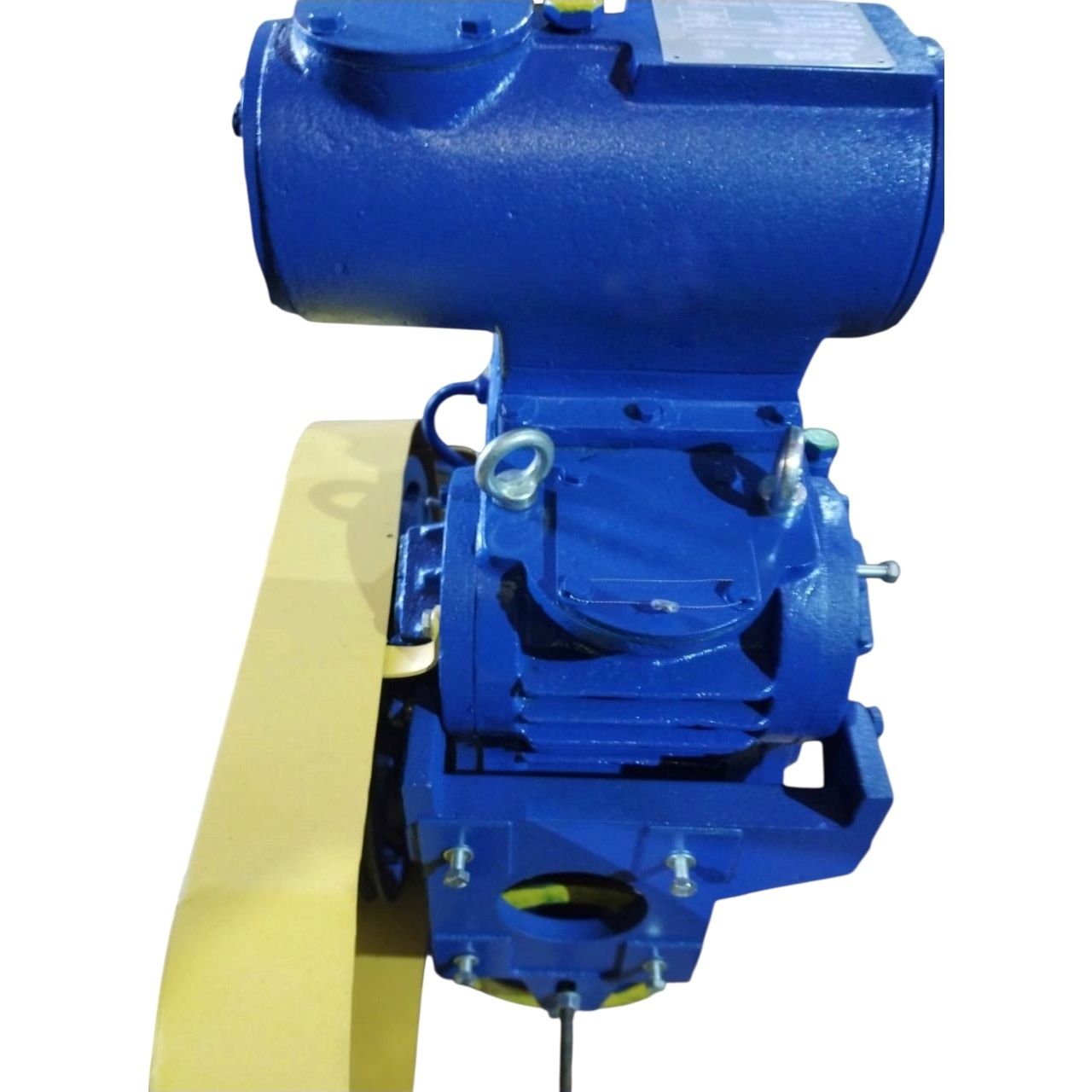 Агрегат вакуумный золотниковый типа АВЗ (АВЗ-20Д, АВЗ-63Д, АВЗ-90, АВЗ-125Д и АВЗ-180),далее по тексту агрегат, предназначен для откачки воздуха и неагрессивных газов, паров и парогазовых смесей, предварительно очищенных от капельной влаги и механических загрязнений из герметичных вакуумных систем в стационарных установках, находящихся в производственных помещениях. Агрегаты не пригодны для откачки сред взрывоопасных, отравляющих, вступающих в реакцию со смазочными маслами и разъедающих черные металлы, а также для перекачки среды между емкостями. Агрегаты выпускаются в климатическом исполнении УХЛ, категории размещения 4.2 по ГОСТ 15150-69 для эксплуатации в пожаровзрывобезопасных помещениях при атмосферном давлении окружающей среды от 84 до 106,7 кПа и температуре откачиваемой и окружающей среды от 283 до 308 К. В условном обозначении агрегата буквы и цифры означают: АВЗ — агрегат вакуумный золотниковый, 63 — быстрота действия в литрах в секунду, Д — двухступенчатый, то есть последовательное действие двух ступеней, УХЛ4.2 — вид климатического исполнения. Основными параметрами агрегатов являются быстрота действия и предельное остаточное давление. Быстрота действия измеряется в плоскости входного патрубка и represents скорость откачки, измеряемая во входном сечении насоса во время его работы. Предельное остаточное давление — давление, к которому стремится давление в стандартизованном испытательном объеме без напуска газа и при нормально работающем насосе. Оно может быть парциальным без газобалласта, полным без газобалласта или полным с газобалластом. Парциальное давление без газобалласта — давление откачиваемой среды без паров воды или парогазовых смесей с напуском балластного газа; для удаления конденсируемых паров из среды применяют вымораживание жидким азотом перед замерами. Полное давление без газобалласта — давление без напуска балластного газа. Полное с газобалластом — давление при напуске балластного газа. Напуск балластного газа предотвращает конденсацию паров воды в рабочей жидкости насоса. Перед входным контролем предельного остаточного давления насос промывают чистым вакуумным маслом и работают с максимально открытым дозатором для отгазовки. Быстрота действия измеряется в плоскости входного патрубка. Значения предельного остаточного давления и мощности приведены при условиях: рабочая жидкость — масло вакуумное марки ВМ-1, температура окружающей среды 293±5 К, температура охлаждающей воды не более 293 К, относительная влажность 45–80%, атмосферное давление 84–106 кПа. Парциальное давление без газобалласта дано при работе «на себя» с охлаждением ловушки жидким азотом. Максимальная потребляемая мощность дана при давлении на входе в насос 37,6 кПа и атмосферном давлении на выходе. Норма надежности достигается за счет использования запасных частей и обслуживания потребителем согласно паспорту. Наибольшее рабочее давление 40(300) кПа достигается при установке агрегата совместно с фильтром ФВ-650. Габаритные и присоединительные размеры приведены на рисунках 1, 2 и 2.3. Выпускаемые агрегаты постоянно совершенствуются, возможны незначительные изменения, которые могут не отражаться. Допускается комплектация агрегата ремнями и двигателями и комплектующими, не нарушающими применяемость. Допускается применение вакуумных ма
