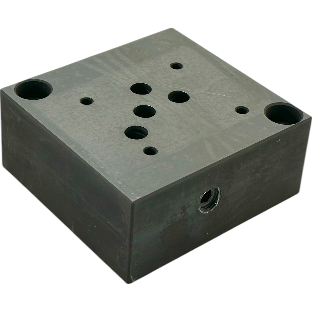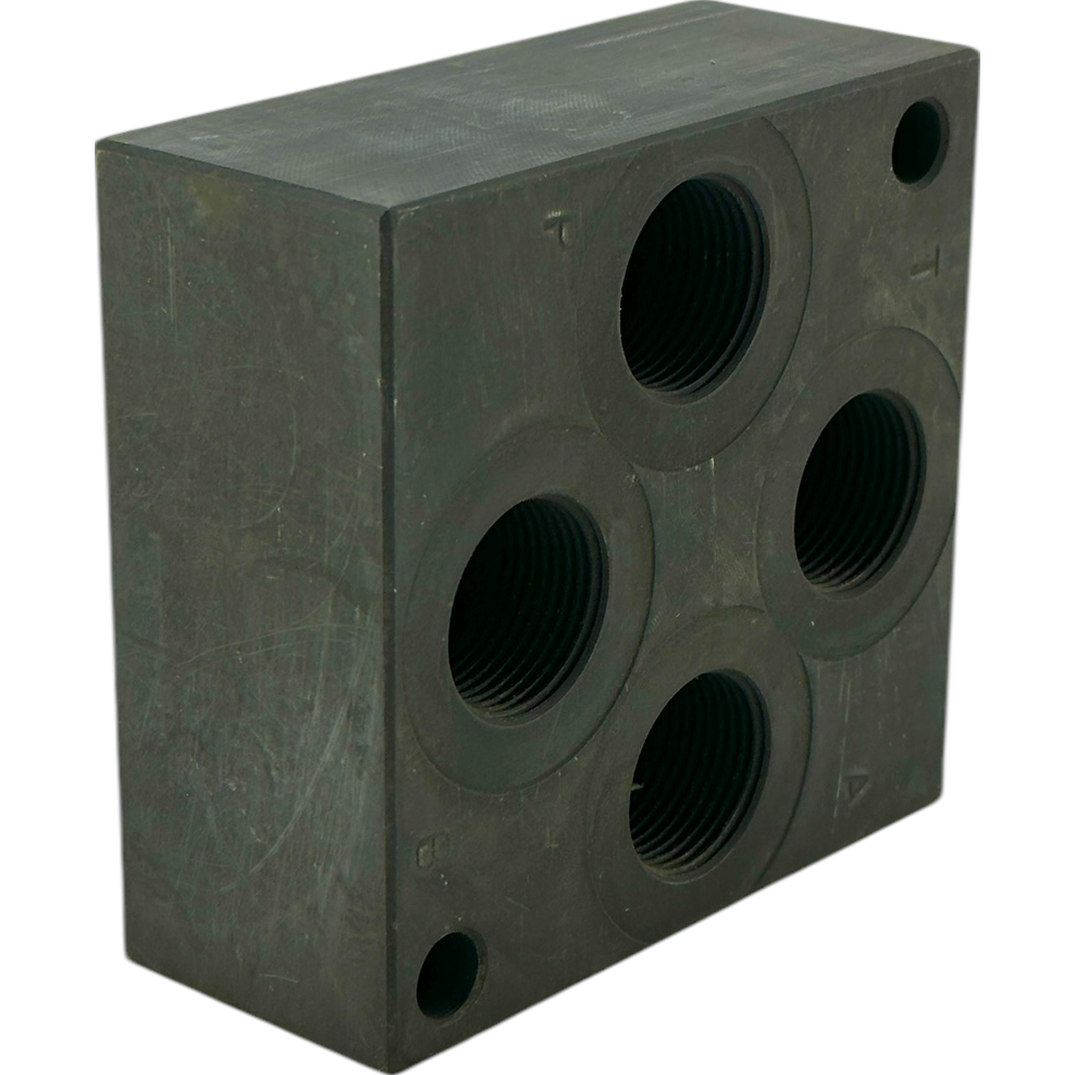 Гидроплита с боковыми отверстиями для монтажа предназначена для гидрораспределителей ВЕ10 и изготавливается из стали. Она имеет четыре выхода с каждой стороны, с соединением 1/2".