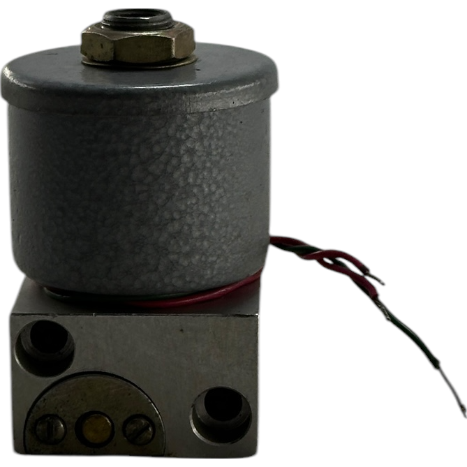 Внутри катушки размещена гильза с завальцованным внутри упором. В гильзе перемещается якорь с уплотнительным узлом, расположенным соосно седлу. При обесточивании электромагнита якорь прижат пружиной к седлу, перекрывая канал подачи воздуха, в то время как выходной канал к потребителю соединён с атмосферой через зазоры на наружной поверхности якоря (на схеме изображение не показано).